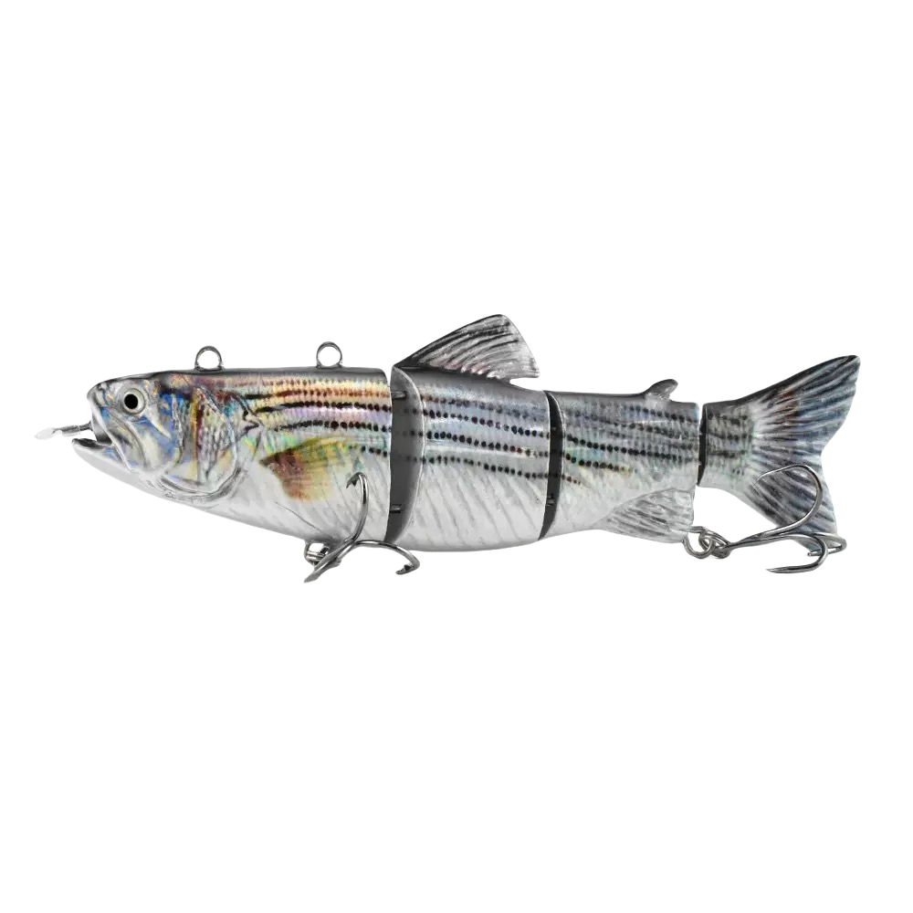 Robotic Swimming Lure's body has a multi-section design, and the flexible, flexible body forms a more realistic form of fish swimming. The different sections of the Lure body are connected by metal and can withstand the strong bite force, unlike the ordinary Lure which is easily connected by the big fish.